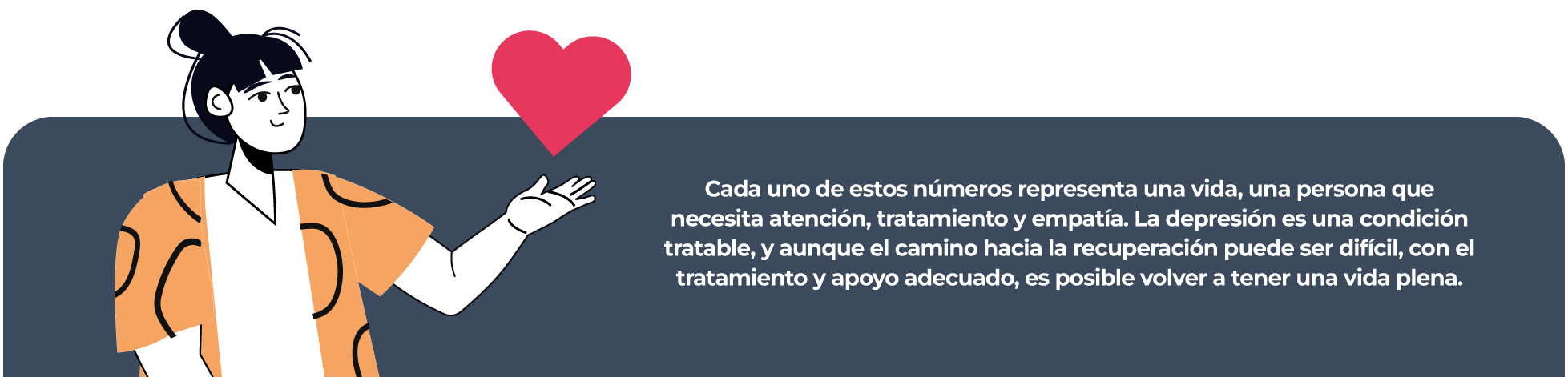 En los casos más graves, la depresión puede llevar a una pérdida de esperanza y al riesgo de pensamientos autodestructivos. El impacto de la depresión es tan profundo que alrededor de 700,000 personas en el mundo llegan a tomar la decisión de terminar con sus vidas.  En jóvenes entre 15 y 29 años, el suicidio es la cuarta causa de muertes. (4)